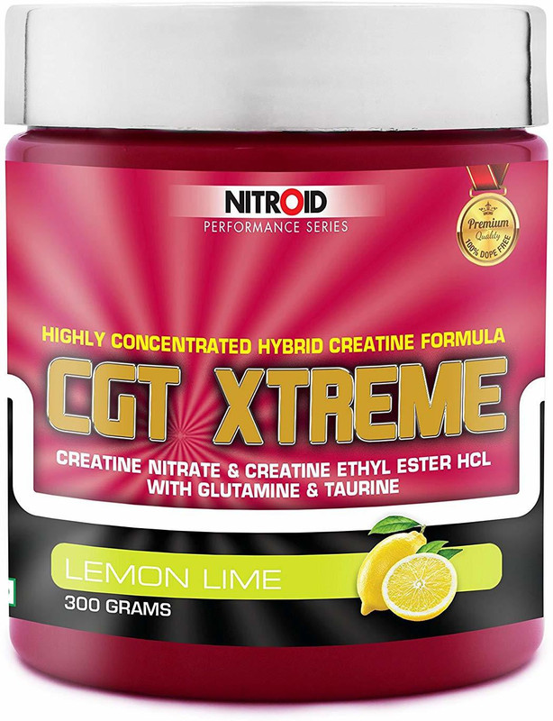 Nitroid CGT Xtreme is a cell volumizing formula that supports strength, power, and rapid muscle recovery. Nitroid CGT Xtreme is an advanced workout supplement that combines three of the most effective muscle building ingredients: Creatine, Glutamine and Taurine into one explosive formula. It provides optimum nutrition and quick revival to muscle after an intense workout. Each serving of CGT Xtreme has 1.5 grams of Creatine Nitrate, 1.5 grams of Creatine Ethly Ester HCL, 3 grams of Micronized L-Glutamine and 2 grams of Taurine.