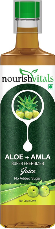 Aloe Vera + Amla Juice, Super Energizer is a healthy combination of Aloe Vera and Amla, the best rejuvenating herbs known to mankind. They are naturally enriched with Vitamins, Minerals, Amino Acids, Polysaccharides, Enzymes and Trace elements. It normalizes the functions of entire body by flushing out toxins and nourishing all body organs. Its strong antibacterial, anti-inflammatory, antioxidant and anti ageing properties make it a safe and effective daily health tonic.
