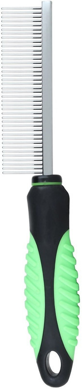 ??? Safe and effective coat care tools.??? Reduces shedding and prevent hair balls.??? Promotes a natural luster to your pet’s fur.??? Helps build the bond between pet and owner.??? Made of soft rubber plastic handle and stainless steel pin, Length- 8 inch.??? Grooming is a great way to spend quality time with your dog or pet. Routine combing of your dog’s coat will remove dead, loose hair and maintain a professionally groomed look. Lifts coats, removes tangles and dead hair for better, faster scissoring. This Fine Steel Tooth Comb feature a sturdy, ergonomic handle for better control and comfort when combing thick heavy coats on all breed animals. Non Slip Handled Dog Comb has been totally designed for grooming cats and dogs. The comb is made with non corrosive material that makes it easy to use. The comb helps remove loose dead hair and a diet and also prevents matting. Regular combing and brushing helps increase blood circulation and promotes healthy hair growth. The comb has round pins that provide extra comfort and help meet the massage action. The comb also has easy sturdy grip handle. FEATURES Ideal for most cats and dogs Remove loose hair, dirt, and helps prevent hair from being matted Promotes hair health and regrowth Rounded pins for extra comfort and massage action Teeth are molded into the combs body for maximum durability Anti-slip, easy -grip handle design