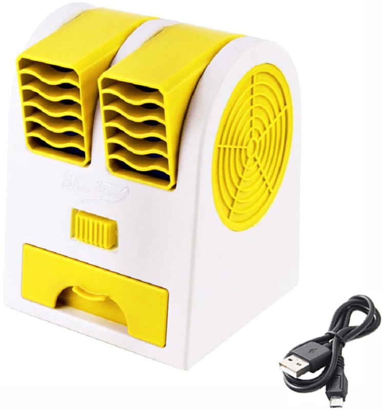 Potasa New Collection Mini Fan & Portable Small Air Conditioner Water Air Cooler mini fan,mini cooler,mini fan, Personal Portable usb Rechargeable cooler with cooling table Desktop-Dual-Bladeless-Fan Car/Home/Office/indoor/outdoor/baby 10 Blade Table Fan(Yellow, Pack of 1)