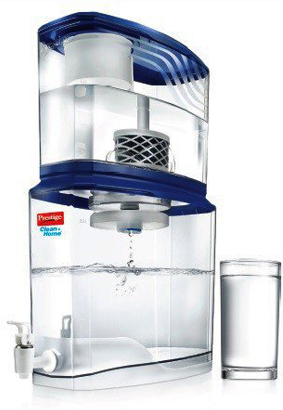 BENEFITS OF PRESTIGE WATER PURIFIER ?? Compliant with stringent US-EPA standards and NSF 42 standards ?? Requires No electricity ?? As safe as boiled water, saves gas ?? Has a capacity of 18 Litres & ensures immediate access to purified water via the 9 litre built-in safe storage container ?? 3 Stage Filtration process Stage 1: Pre-Filter made of Non-Woven cloth to remove particulate and suspended impurities Stage 2: The Microbiological FACT filter cartridge which powers the FX BioSafe Filter provides: 99.9999% reduction of pathogenic bacteria. 99.99% reduction of water-borne viruses. 99.95% reduction of water-borne cysts. Chlorine Taste and Odour (CTO) reduction. Chemical reduction. Exceptional dirt-holding capacity. Fast flow rate of up to 8 litres per hour under gravity ?? Uses no chemicals for filtration ?? Has extremely long life of 1500 Litres (under test conditions) & hence lowest cost per liter of water. Best value for money ?? Uses raw materials which are NSF/ANSI, standard 42 compliant ?? All plastic used complies to IS 9845:1998 standard