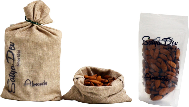 Our Premium Quality Almonds, full kernels, are large,100% natural, with no preservatives, delicious and fresh, which can be eaten raw, roasted or soaked. With no added colour or additives, the energy packed Almonds are ideal for Almond milk as a delicious beverage. Crushed / chopped almonds are also a wonderful garnish for many dishes. A delicacy rooted in Indian tradition, Badam Ka Halwa (Almond Fudge) is indispensable for celebrations of any kind. Packed in a highly hygienic environment to ensure that you get the most premium hand selected quality. These are packed in food grade zipped bags and then placed in jute decorated gunny bags, ideal for gifting on all occasions to your loved ones.