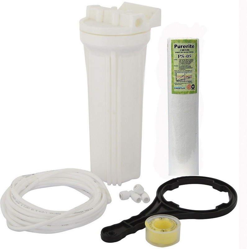 Pre Filter Bowl with Spun Filter Two Connectors for Inlet Outlet and Pipe To Connect with Purifier System and Wrench To Open It and Close It In Easy Way This Pre Filter Bowl Increase Your Purifier Life It Remover All Solid Particals From Water Till 5 Micron Package contents: 1 Pcs of Pre Filter, 1 silver polypropylene sediment filter, 1 pre filter Spanner/Wrench, 5 m 1/4″ pipe, 1 Pcs Teflon, 2 pcs 1/4 connectors.