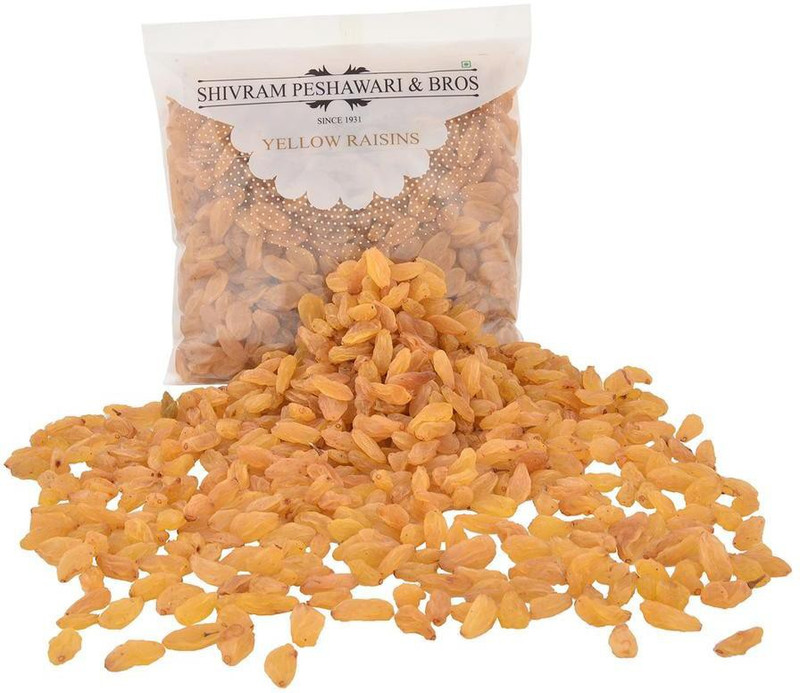 Add them to salads, cakes, desserts and savoury dishes, or eat them just as they are as a snack; these yellow raisins from Shivram Peshawari & Bros will make your meals tastier and healthier. Health benefits of yellow raisins Loaded with flavonoids, raisins are a good source of antioxidants. They also contain many essential vitamins and minerals such as iron, magnesium, calcium, Vitamin B, potassium and phosphorous that help in reducing inflammation, improving brain function and preventing heart diseases.