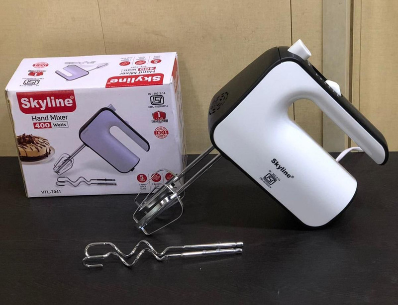 1. Wattage :- 400W 2. Function :-Hand Mixer 3. Power :-220V-50Hz 4. Damnation :-20*10*14.5 CM 5. Weight :- 1.30 KG Product Feature:- 1. .5 Speed.function 2. Turbo Function and Eject Button with SafetyDevice. 3. 2 Chromed Beats& Hooks. 4. Ejector forReleasing Beaters &Hooks. 5. Best for making lassi, cakes, shakes,dough etc Speedy functional hand mixer with 2 chromed beats and hooks with ejectorfor releasing beaters and hookers. It is turbo functional and has eject buttonwith safety device.