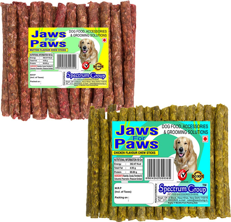 Spectrum Group-Pet Food and Accessories Division brings for your pampered Pet Money Saver Combo Pack with Mutton + Chicken Munchies also known as Chew Sticks, Qty 40+40 Sticks or 450+450 g depending upon the lot manufectured. These sticks are available in Chicken, Mutton, Calcium and Natural Flavors single and in Money Saver Combo Packs. Munchies are used for Holistic Nutrition for your Four Legged Love. These sticks are said to build immunity and keep your pet healthy and cheerful so that you spend more and more moments of love & play with the Pet. These sticks are ideal for all breeds of adult dogs. Our stringent quality checks coupled with ISO approved processes ensure that you will get optimum quality products that has passed through stringent quality test parameters defined by HACCP and ISO 9001:2015. Spectrum Group is one stop shop solution for all Pet needs from Fashion Apparals, Accessories, Pet Security items, Pet food,Pet Nutrition & Pet Hygiene products like Hair Care, Skin Care & Oral Care, along with wide range of Toys and Play items.
