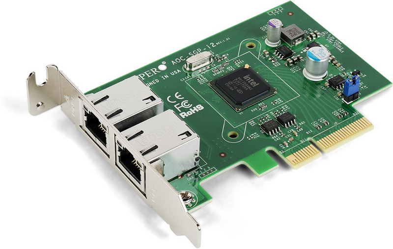 The AOC-SG-i2 provides the industrys best priceperformancewith its high-performing PCI Express10/100/1000 Ethernet connection. This compact controlleralso improves flexibility and performance in virtualized multicoresystems by lowering interrupt overhead and providingsorted multiple data queue paths.