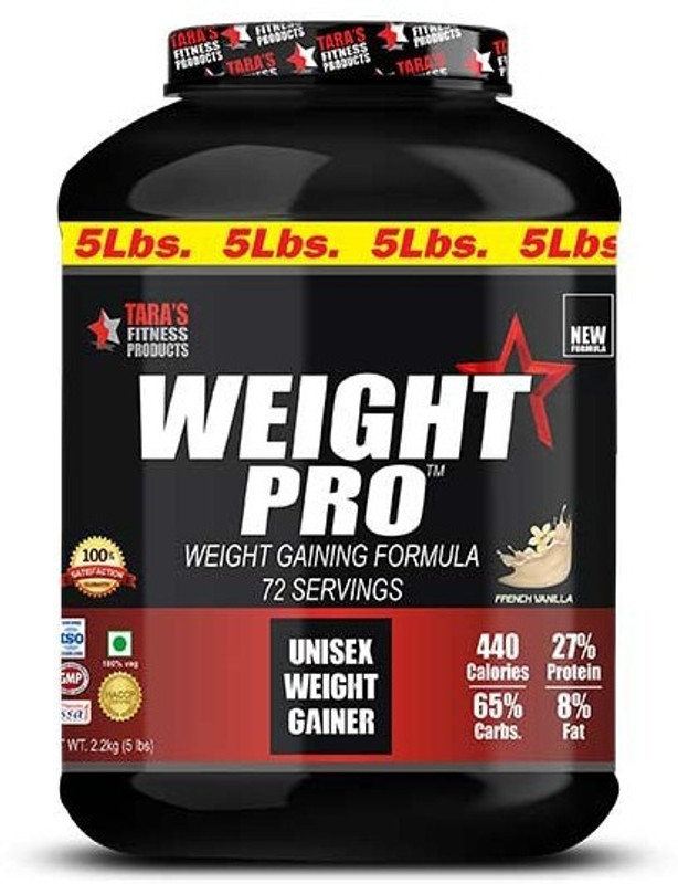 What makes TARAS WEIGHT PRO the most effective weight gainer? High-Quality Proteins: TARAS WEIGHT PRO is comprised of high biological value proteins, which means they are easily digested and absorbed so they provide a full complement of amino acids to support the rebuilding process.* Each serving of TARAS WEIGHT PRO provides a 19gram dose of premium weight gaining carbohydrates made from 7 unique sources.* Complex Carbohydrates & Lipids: Carbohydrates and lipids (fats and oils) provide sustained energy that help prevent proteins from being burned as fuel.* Each serving of TARAS WEIGHT PRO provides 3 grams of fat. In addition, TARAS WEIGHT PRO supplies medium chain triglycerides (MCTS) and other energy-dense lipids. Micro nutrients: Various vitamins and essential minerals are utilized during the growth process. Without these micro nutrients your body cannot effectively process proteins, carbohydrates, or fats. Each serving of TARAS WEIGHT PRO provides all types of vitamins and essential minerals naturally. Calories: To gain just one extra pound, you need to consume approximately 3,500 calories-above and beyond what you normally consume through foods, beverages, and supplements. TARAS WEIGHT PRO provides over 135 calories per serving. By adding minimum two servings to your daily routine, you can begin to experience an increase in mass within the first week.* Flavor: French Vanilla Supplement Facts Serving Size: 1 Level Scoop (30g), 32 Servings Approximate Composition Per Scoop 30g Energy 135kcal Protein 8g Total Carbohydrates 19g Sugar 3g Total Fat 3g Unsaturated Fat 2g Saturated Fat 1g Dietary Fiber 0g INGREDIENTS: Malto Dextrin, Milk protein, Sugars, Vanilla flavor and preservatives. PROCUREMENT: WEIGHT PRO is manufactured using imported blends. CAUTION: WEIGHT PRO is suitable for teenagers and adults of all body types. It is not recommended for the children below the age of 13 years.