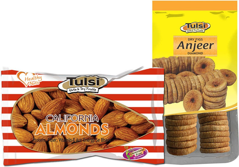 1. The Tulsi California Almonds Premium (Best Quality) makes for a healthy snack that’s packed with protein, fiber, calcium, zinc and antioxidants. 2. These almonds contain no added colours and preservatives. 3. Regularly eating almonds lowers the bad (LDL) cholesterol levels and increases the good (HDL) cholesterol. 4. You can sprinkle the almond shaving as a crunchy topper for your favourite salad or in cookies, biscotti and muffins.Cold weather is the perfect time for munching crunchy and nutritious dry fruits. Brand Tulsi brings for you some delightful and best quality dry fruits to warm and cheer up your winters and festive season. These dry fruits have been processed using high quality standards and are purely natural in flavour, taste and aroma. Hurry and make your purchase online today!