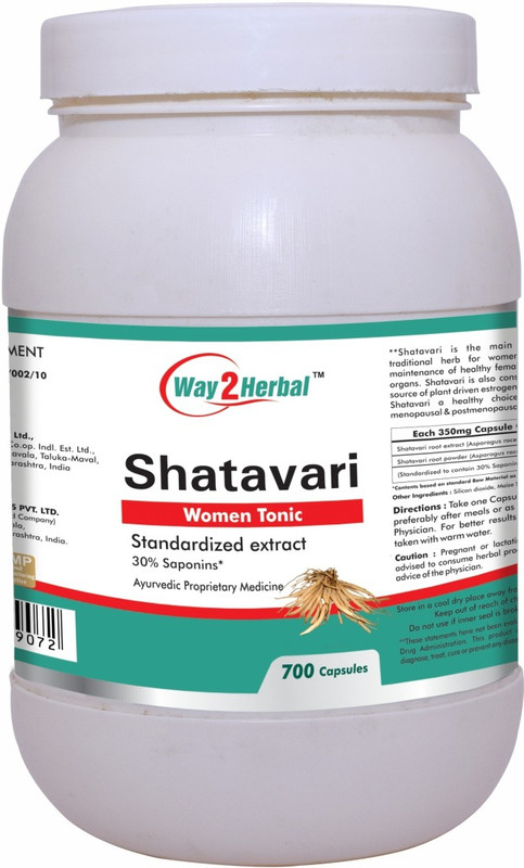 Way2 herbal Shatavari Capsule has been well formulated with utmost researched facility for its benefits. Shatavari is a potent aid in maintaining female hormonal balance. Shatavari improves functioning of the female reproductive system health. Way2herbal Shatavari is combined with best formula of Pure extract and powder Asparagus racemosus with its actives as Saponins to maximize the benefits. Direction For Use: Take 1 capsule twice daily preferably after meals or as recommended by the physicianFor better results it should be taken with warm water.