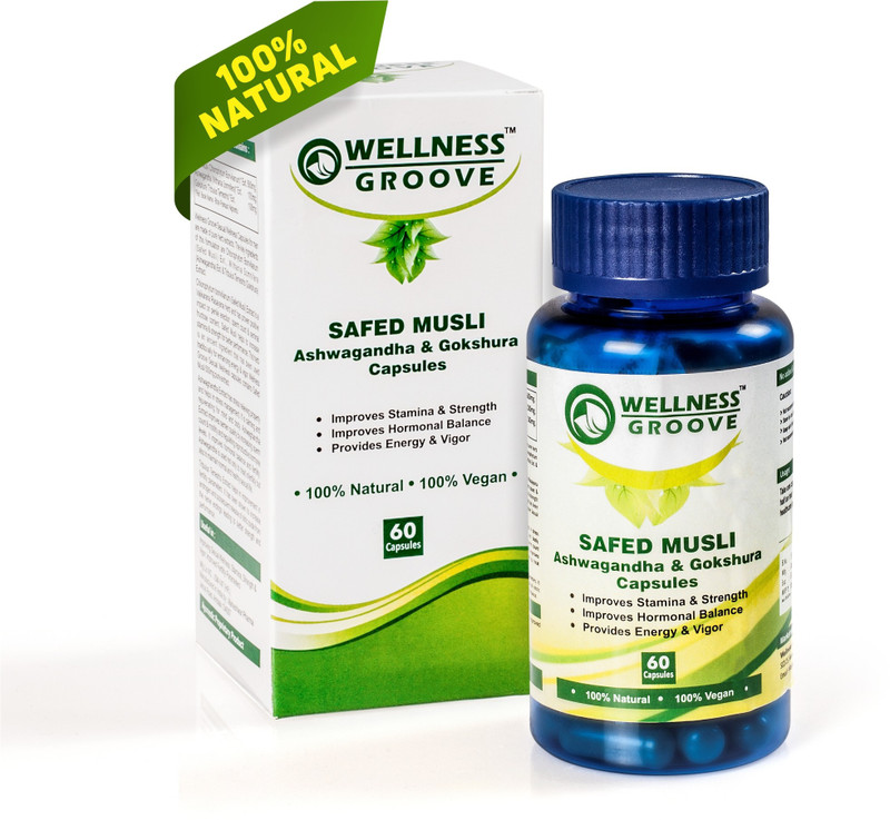 Wellness Groove Safed Musli, Ashwagandha & Gokshura Extract Supplement Capsules for Men, 100% Natural 60 Vegan Caps
