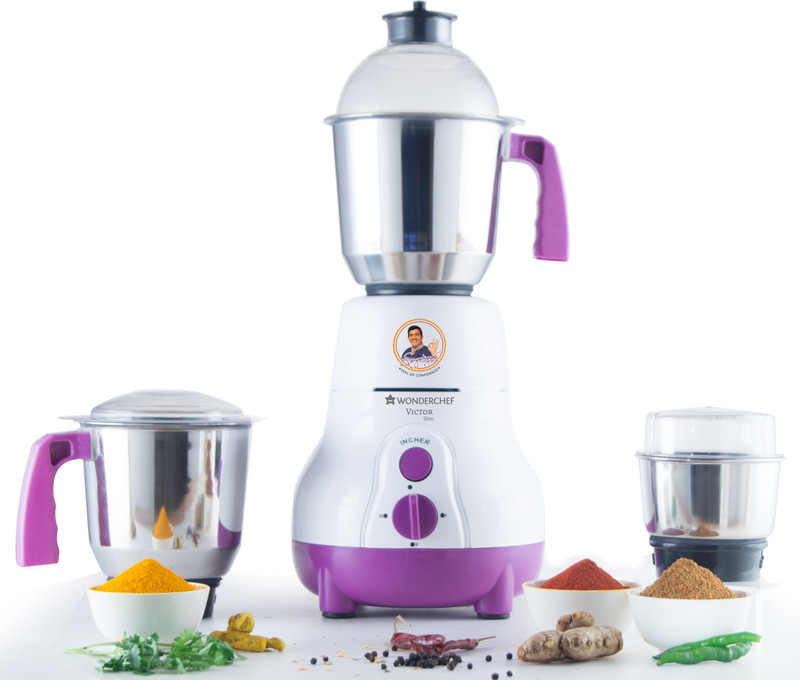 WONDERCHEF Victor Slim 600 W Mixer Grinder (3 Jars, Purple, White)