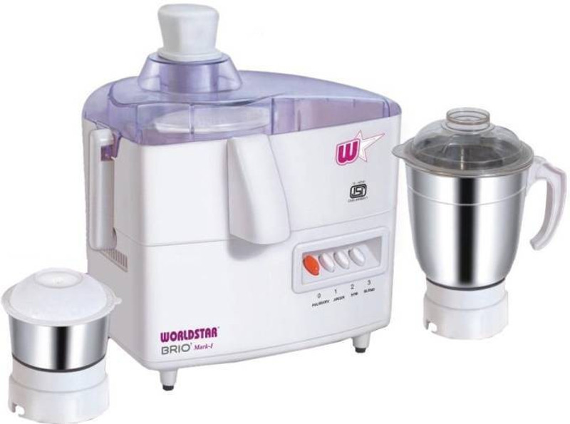 Worldstar Brio-mark 1 450 W Juicer Mixer Grinder(White, 2 Jars)