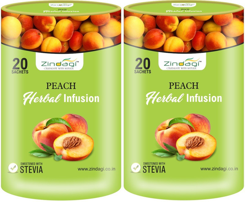 Zindagi Peach Herbal Infusion is also naturally sweet. Peach is a popular source of vitamins and minerals. Peach infusion is also a good source of dietary fiber, which normalizes bowel movement and at the same time controls hunger. Because of its richness in fiber, regular consumption of peach effectively helps in losing weight. It is not only delicious it is also very safe and nutritious. They are low in calories, contain no saturated fat or cholesterol, and are a good source of dietary fiber. The presence of chlorogenic in these fruits also contributes to their protective effects. It protects the body against the harmful effects of various diseases. Peach infusion helps in maintaining healthy skin owing to the presence of a good amount of vitamin C. Peach herbal are good for maintaining healthy digestive health.