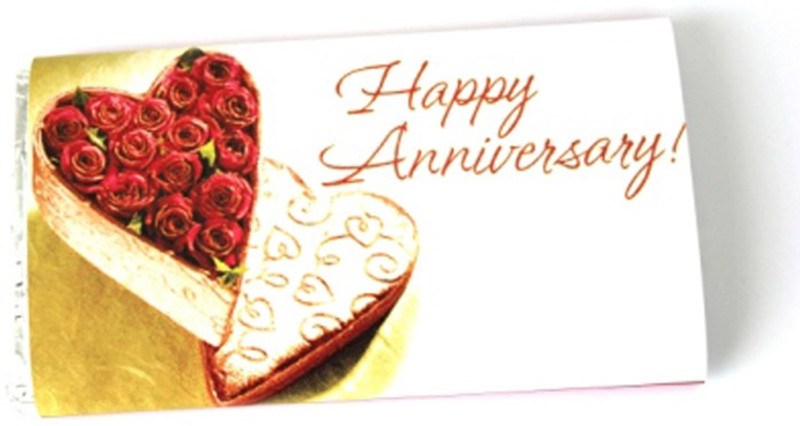 A 200 gms slab of Chocolate wrapped neatly “Happy Anniversary” wrapper.Perfect Personalised
