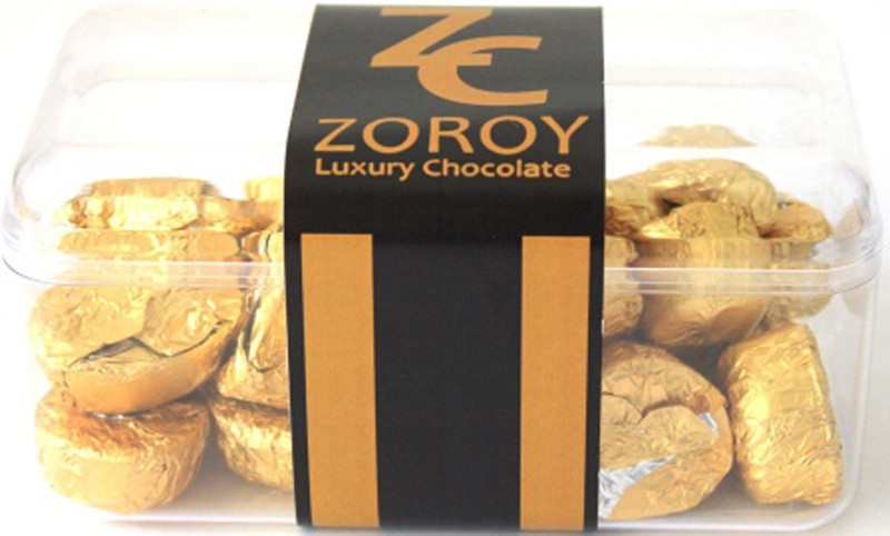 Transparent kuboid boxes with 24 chocolates (240gms) in authentic Indian flavours. Box contains milk chocolate with a suttle hint of cardamom, Paan chocolate and our very special date almond chocolate. Box is neatly finished with our very own paper couture paper ribbon.