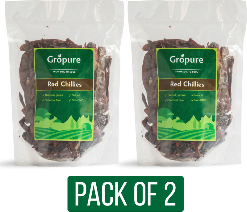 Gropure Organic Red Chilli Whole, 200g(2 x 100 g)