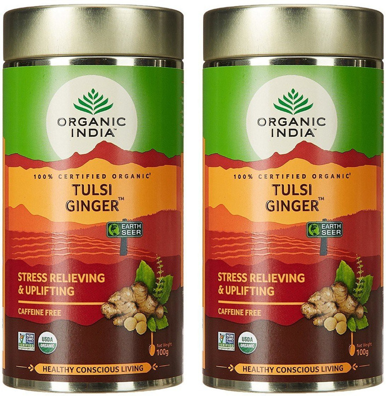 Organic India Tulsi Ginger Tea 100 GM Tin- (Pack Of 2) Tulsi ...