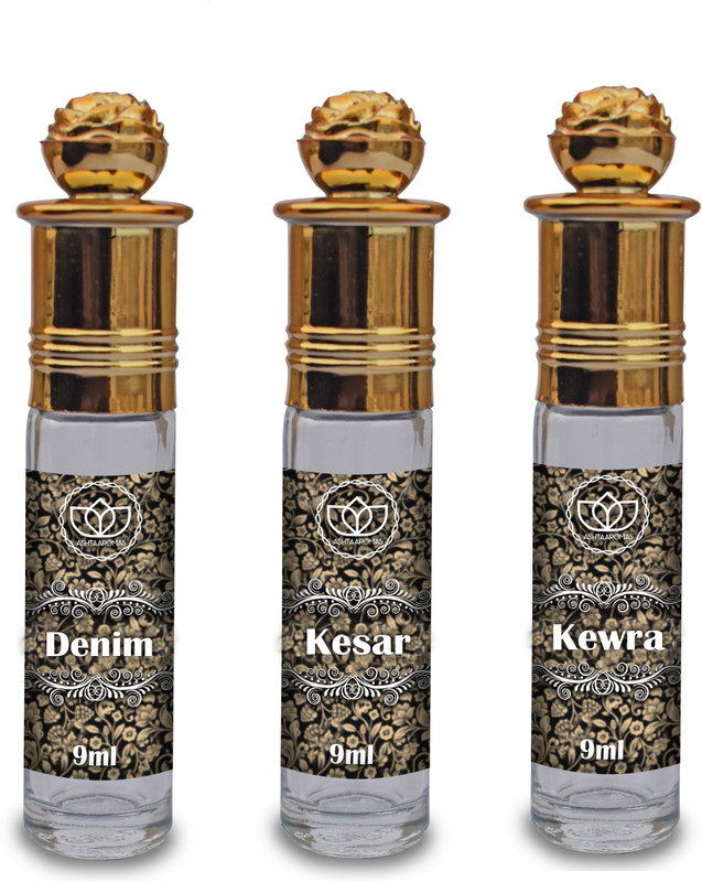 ASHTAAROMAS Set of 3 Combo Of Denim, Kewra and Kesar Attar f ...