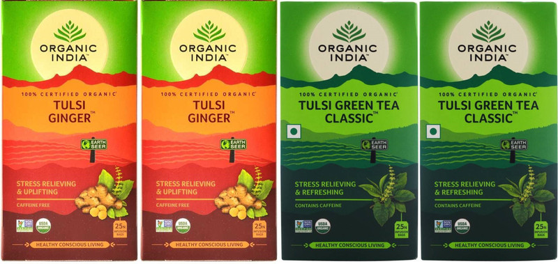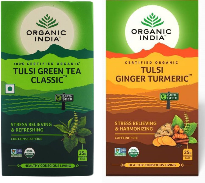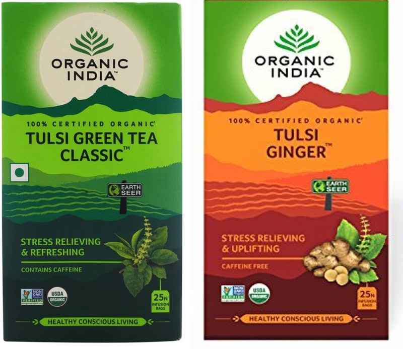 Organic India Tulsi Green Tea 25 Tea Bag & Tulsi Ginger ...