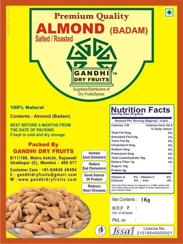 Gandhi Dry Fruits Premium Quality Salted/Roasted 1 kg Almond ...